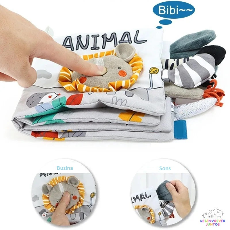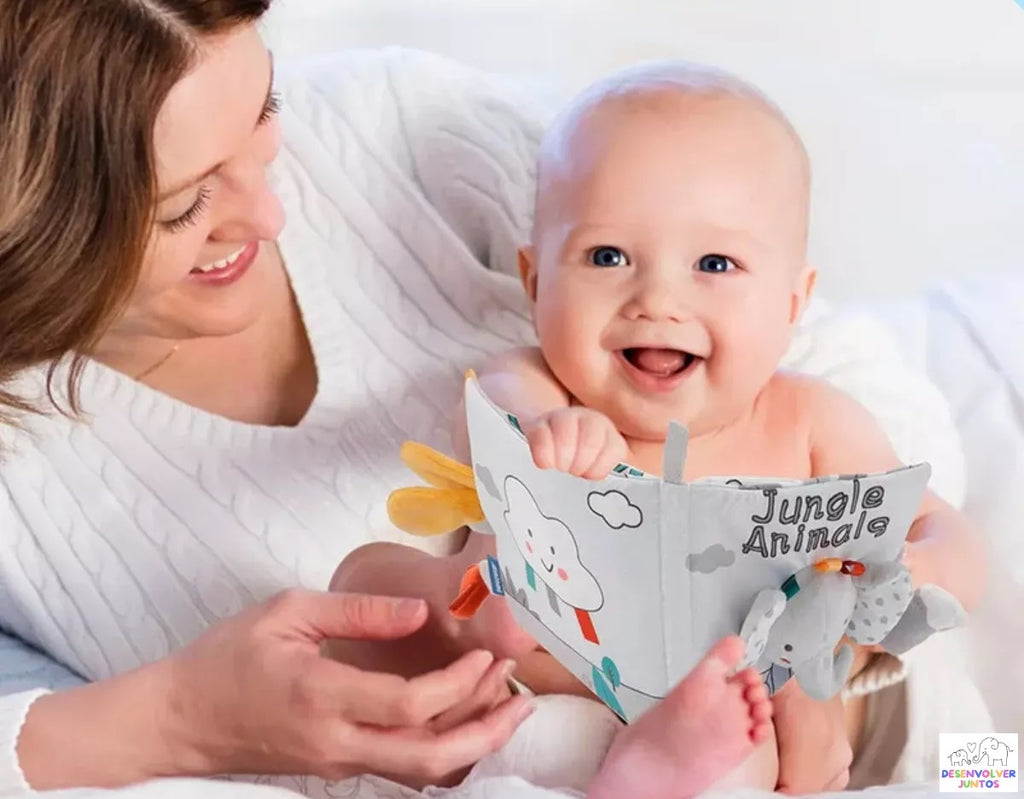 O Livro Sensorial é um brinquedo encantador que estimula os sentidos do bebê por meio de cores, texturas e sons divertidos
